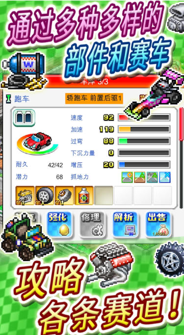 像素风格与模拟经营融合:游戏采用经典像素画风,结合模拟经营玩法,玩家扮演赛车俱乐部经理人,需管理车队、设计赛车、培养成员,逐步扩大俱乐部规模。