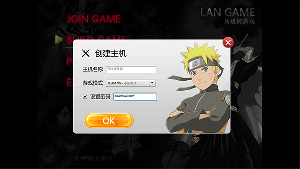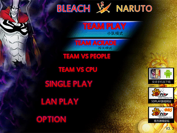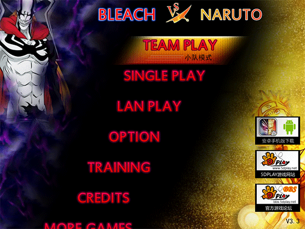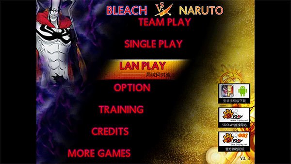 1、首先启动死神 vs 火影 jojo 版电脑版,进入游戏主页后,在功能菜单中找到并选择 “LAN PLAY 局域网对战” 选项;