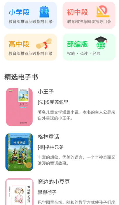 覆盖小学至高中全学段,精选教育部推荐书目及拓展读物,按年级分类呈现,满足不同阶段的学习需求。