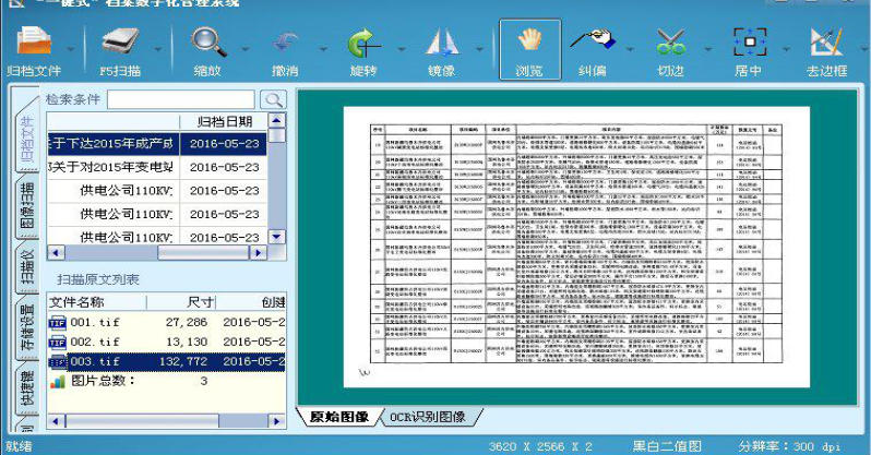 批量扫描与优化:支持高速扫描仪批量处理档案,自动纠偏、去黑边、调整亮度对比度,提升图像质量。