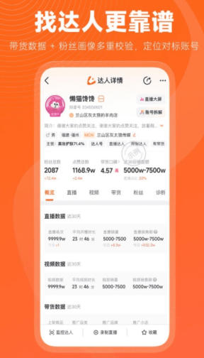 达人数据:提供达人库、达人热度榜、星图达人榜、MCN机构榜等功能,帮助用户快速找到涨粉快、带货能力强的达人,并智能匹配对标达人。