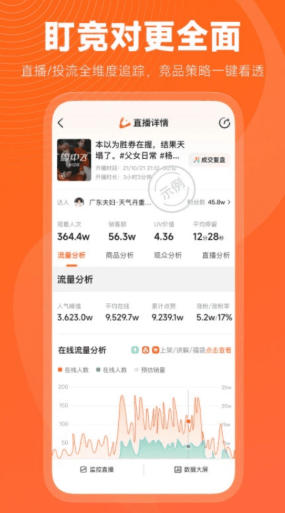 直播数据:实时监控直播间人数、人气趋势、送礼人数、商品销售额与销量等数据。支持直播实时榜、达人带货榜、直播商品榜、礼物收入榜、土豪送礼榜等五大榜单,方便用户实时监控直播电商业务。