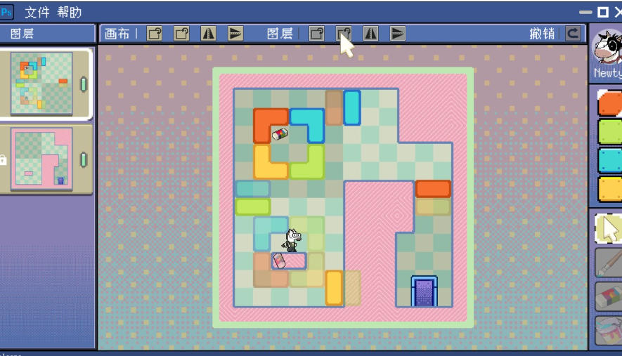 玩家可以在游戏中体验到熟悉的办公软件元素和功能,如PS(Pixelshop)中的色块与图层碰撞等。