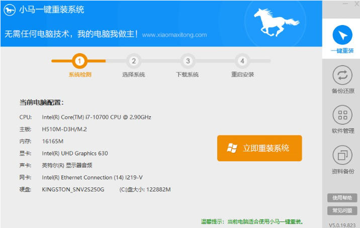 小马一键重装系统这款软件的操作步骤是非常简单的,而且非常快速,因此用户可以放心使用。另外还推荐{recommendWords}等相关下载使用。