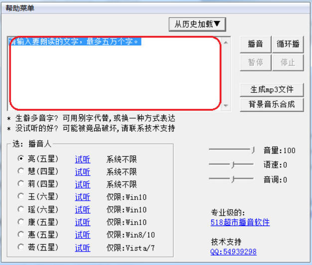 可自由添加背景音乐,支持音乐与语音混音穿插,合成MP3文件。