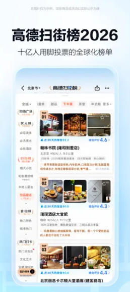 基于用户真实导航、搜索及到店行为数据,结合AI算法与芝麻信用评价,生成覆盖全国超300个城市的线下商户榜单(如“轮胎磨损榜”“本地人爱去榜”),帮助用户发现优质餐厅、酒店及景点。